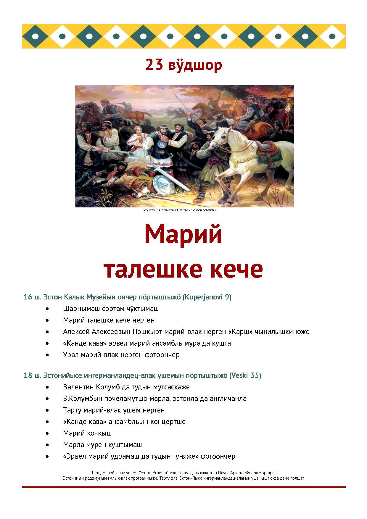 Ушештарена, тений ага тылзын 3-шо кечыжын лÿмлö марий почеламутчылан 75 ий темеш. Садлан кöра, Марий Элыште тиде ий «Колумбын ийже» семын увертаралтын. Читать далее