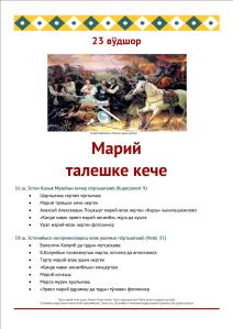 Ончычсо Марий парк олмышто Марий каныме кас лиеш. Программыште марий муро, куштымаш да марий калык модыш.