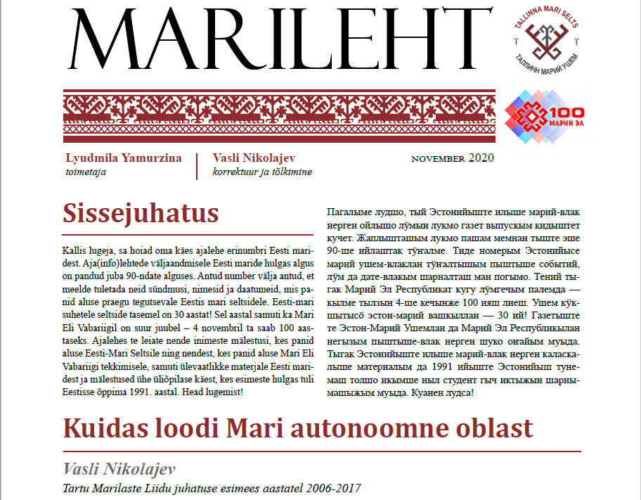 Таллинн марий-влак кок лӱмгечым палемденыт (УЭМДЫМЕ)