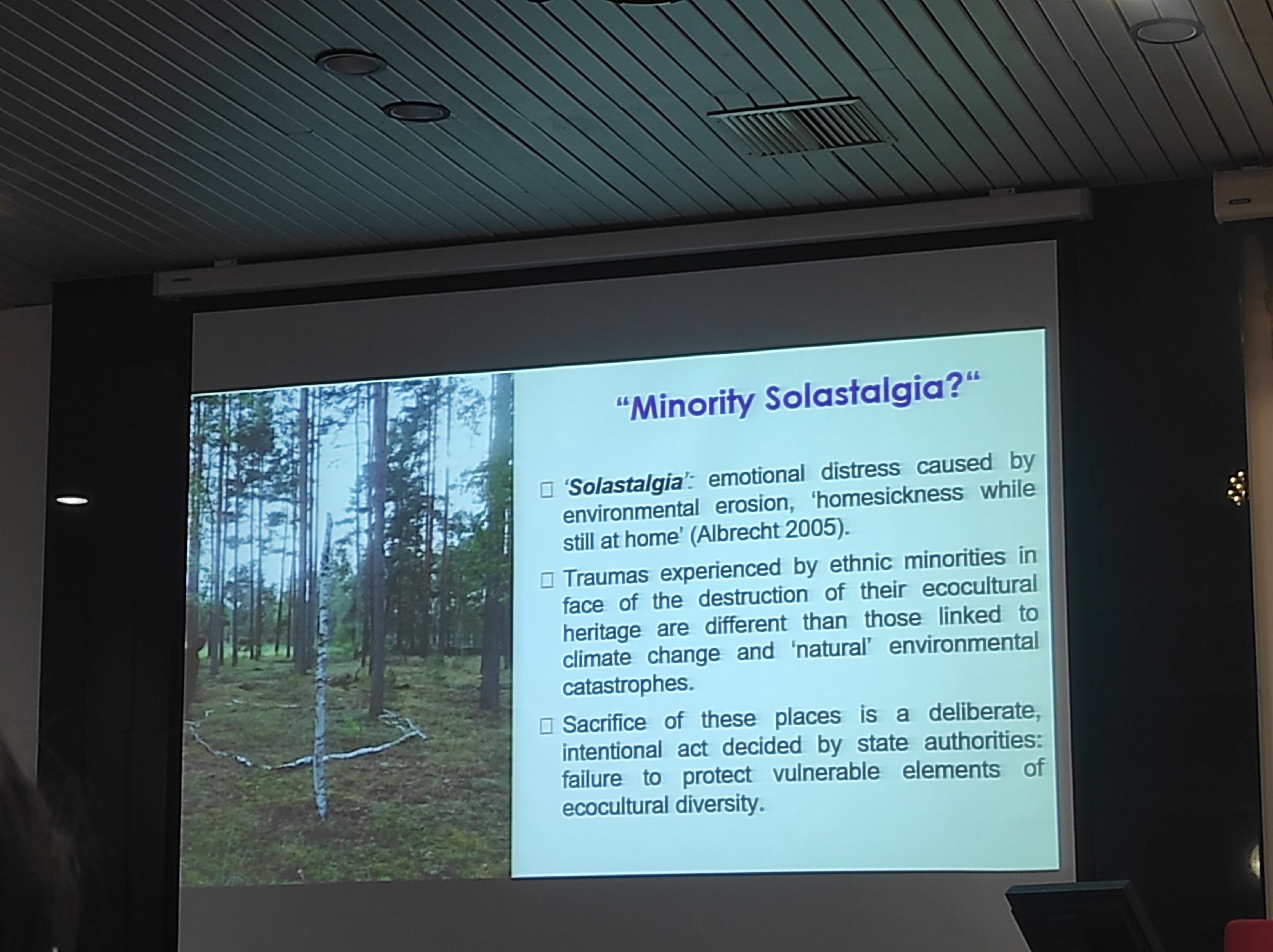 На лекции мы обсуждали и психологический аспект этих процессов – явление «соластальгии». Это особый вид тоски, когда ты остаёшься жить на родной земле, но она уже не та, что раньше. Я хорошо понимаю это чувство: в детстве, возвращаясь в родную деревню, я видел, как берёзы, под которыми я проводил часы своей жизни, были безжалостно вырублены. Их потеря оставила в душе пустоту.